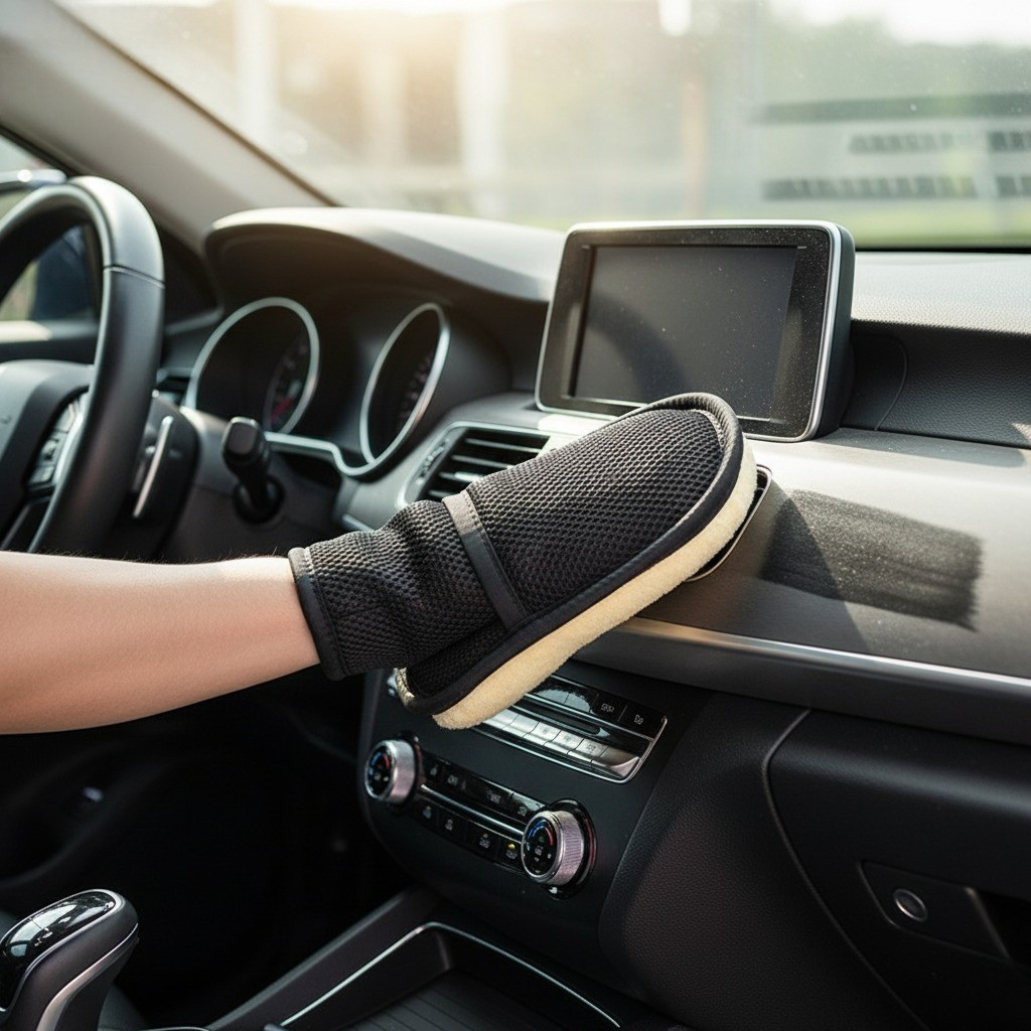 Tvätt, tork och polering med samma handske.